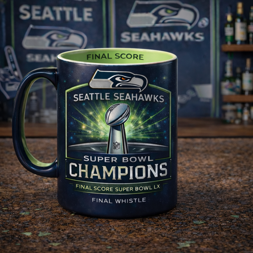 💙🏆A final score you’ll never forget. This Seattle Seahawks Super Bowl LX mug captures the pride, emotion, and legacy of a championship night—bringing the victory back with every sip. ☕✨